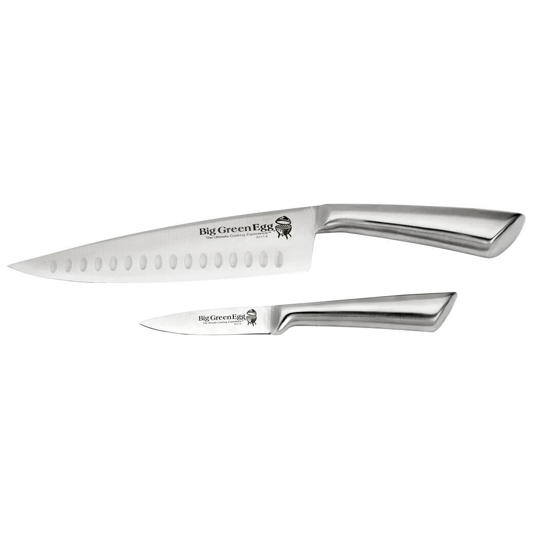 De Big Green Egg messenset bestaat uit een koksmes en een officemes, beiden in zijn geheel vervaardigd uit roestvrij staal. Het staal bevat een hoog percentage carbon waardoor het eenvoudig is de messen vlijmscherp te slijpen. Het heft van de messen is ergonomisch gevormd voor een goede grip.