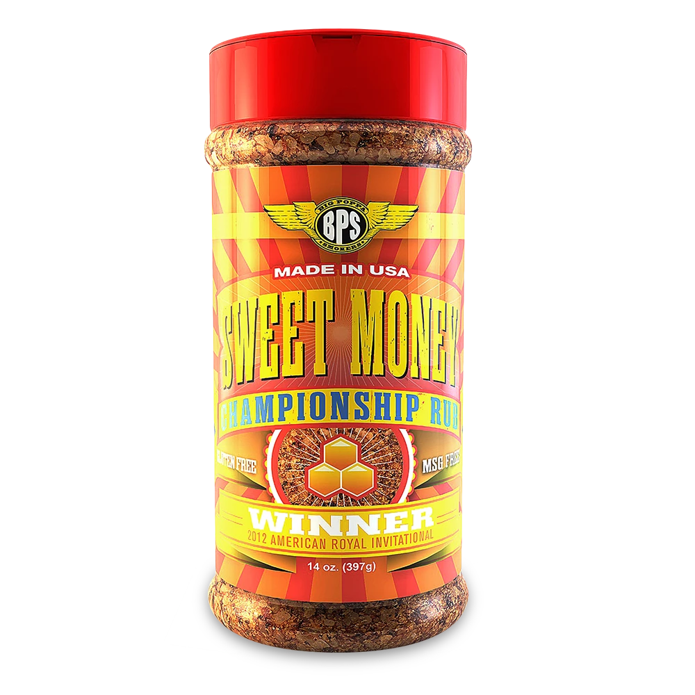 Big Poppa Smokers Sweet Money Rub. Van de achtertuin tot de World Series of BBQ, Big Poppa Smokers rubs zijn snel uitgegroeid tot het beste merk voor BBQ-concurrenten en BBQ-hobbyisten. Vervaardigd door Big Poppa zelf, zijn onze rubs gegroeid van een klein aantal volgers op het wedstrijdcircuit, tot gebruik in landelijke restaurantketens, tot het nieuwe hoofdgerecht thuis in de voorraadkast. Van barbecuegerechten in de achtertuin tot doorgewinterde pro, we zijn ervan overtuigd dat BPS-rubs uw BBQ-smaakprofiel zullen versterken.