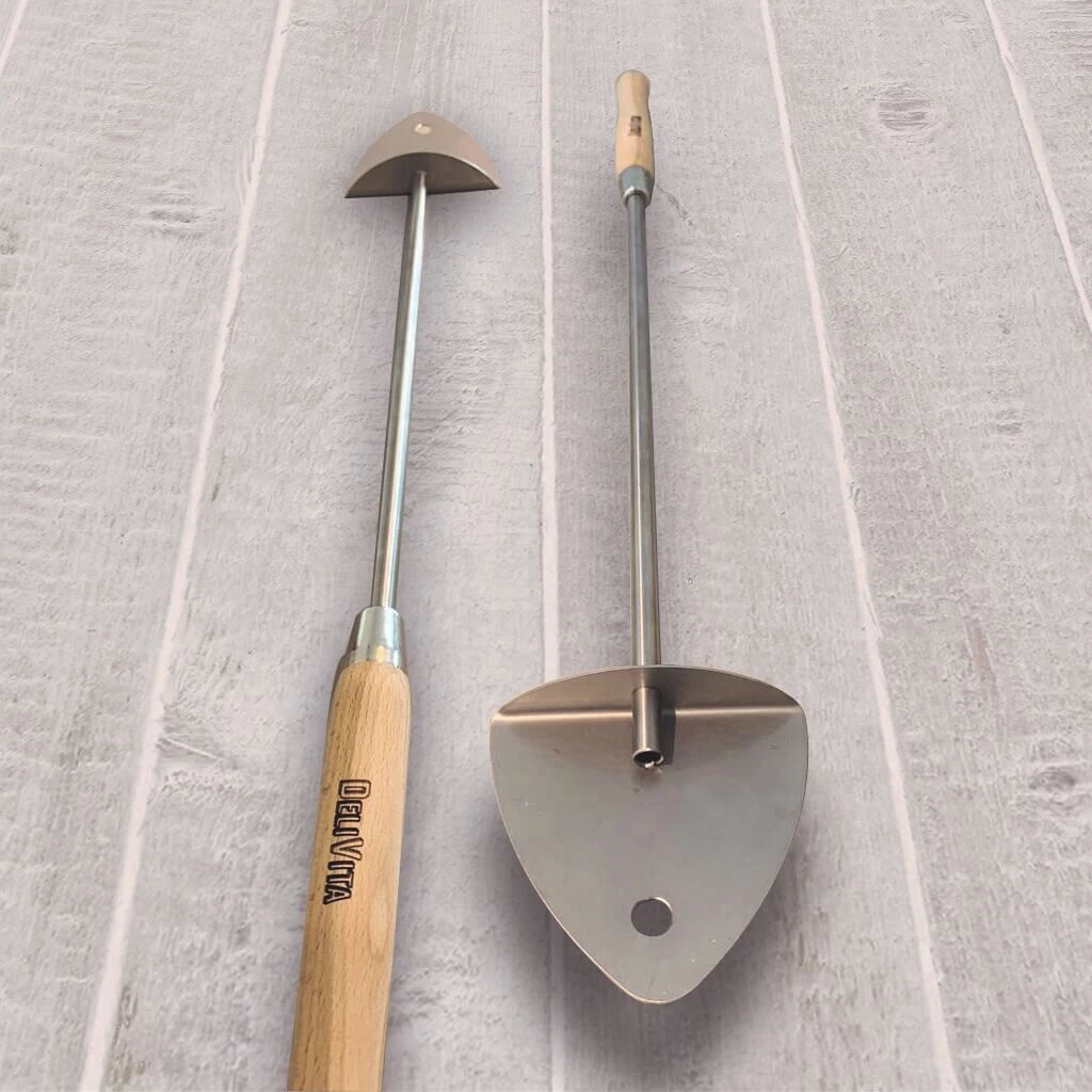 De Delivita Prod & Blow is vervaardigd uit roestvrij staal met een houten greep en is handgemaakt en speciaal ontworpen voor de Delivita Ovens. De lange greep maakt het gebruik van de schep veilig, zo voorkomt u dat u met uw handen dicht bij de pizza-oven hoeft te komen. Gebruik voor het plaatsen en verwijderen van pizza’s of houtblokken uit de Delivita Oven