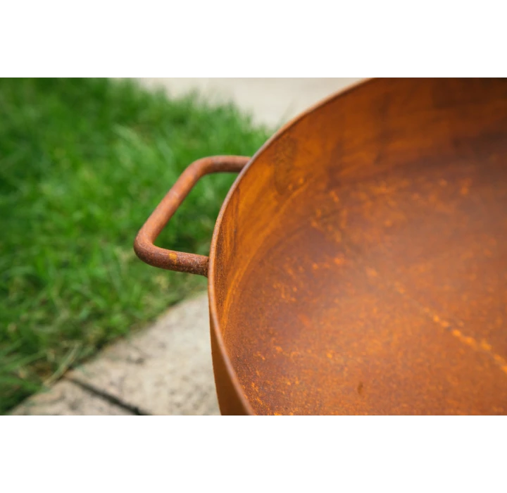 Onderhoud: Dit product is gemaakt van staal en heeft de neiging te roesten onder invloed van vocht en zuurstof. Het doel van de zorg is vooral het vermijden van roest. Om roest effectief te voorkomen mag de vuurschaal niet meer in de regen staan dus altijd wegzetten na gebruik en behandelen met olie. Herhaal de behandeling met olie regelmatig voor langdurige bescherming. Geschikt voor dit doel zijn bijvoorbeeld koolzaadolie, lijnzaadolie of reuzel.Â