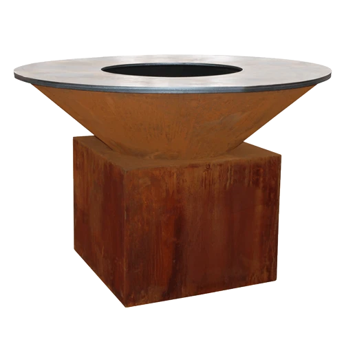 De OFYR is weerbestendig en kan in alle weersomstandigheden buiten blijven staan en gebruikt worden. Het staal zal zichzelf beschermen met de kenmerkende oranje oxidatielaag die Cortenstaal vormt.