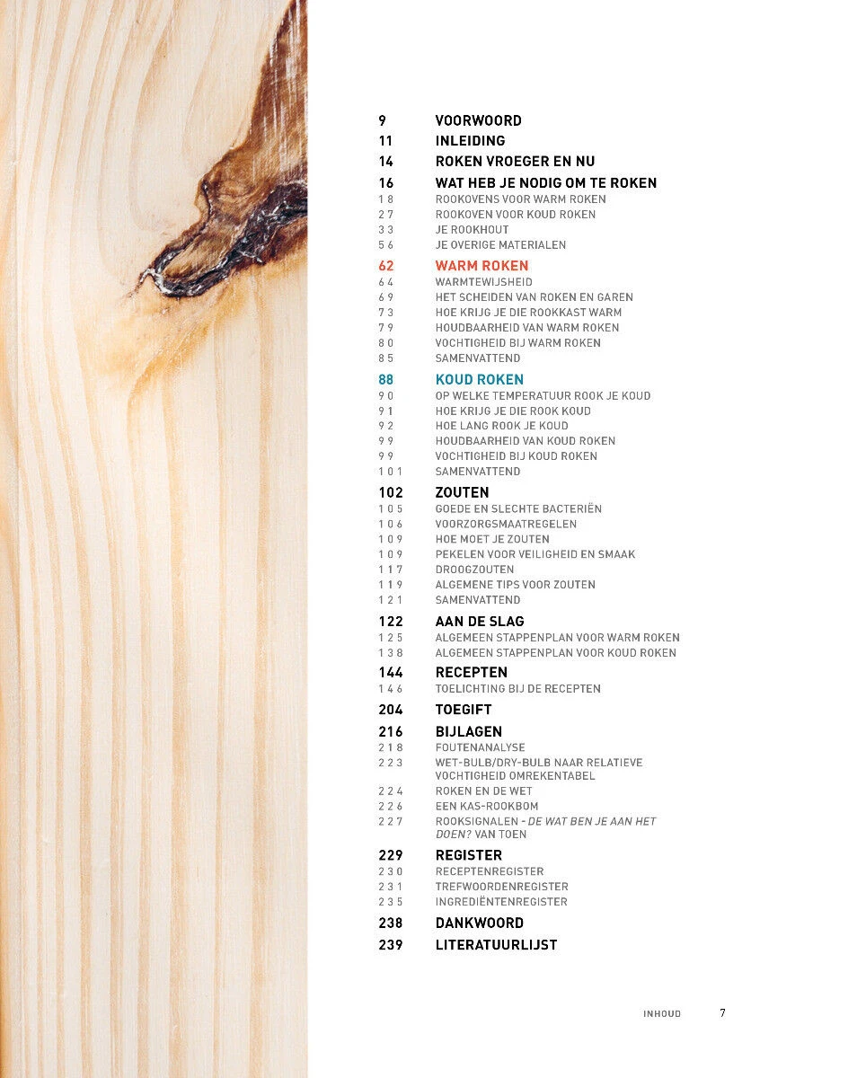 In Over rook kom je alles te weten over het roken van vlees, vis en groenten: het verschil tussen warm en koud roken, de materialen die je als thuisroker ter beschikking staan (van rookpan, rookkast en barbecue tot koudrookgenerator en rookpistool), de subtiele smaakverschillen tussen roken op eik, beuk, hickory of hooi en de ideale temperatuur waarop je je hout (onder meer in de vorm van mot of snippers) laat smeulen. Uiteraard is er ook veel aandacht voor smakelijke veiligheidsmaatregelen als pekelen en droogzouten.