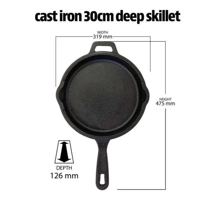 - Diameter Gietijzeren Skillet diep: 30,5 cm