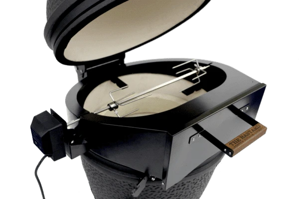 Met de The Bastard pizza-rotisserie kunt u zowel grote stukken vlees draaiend en gelijkmatig garen als knapperige pizza’s bakken. De accessoire is gemaakt van dubbelwandig materiaal wat zorgt voor een goede warmte-isolatie.