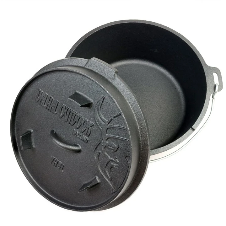 Valhal Outdoor Dutch Oven 8.4 quarts / 8 liter met pootjes op de deksel